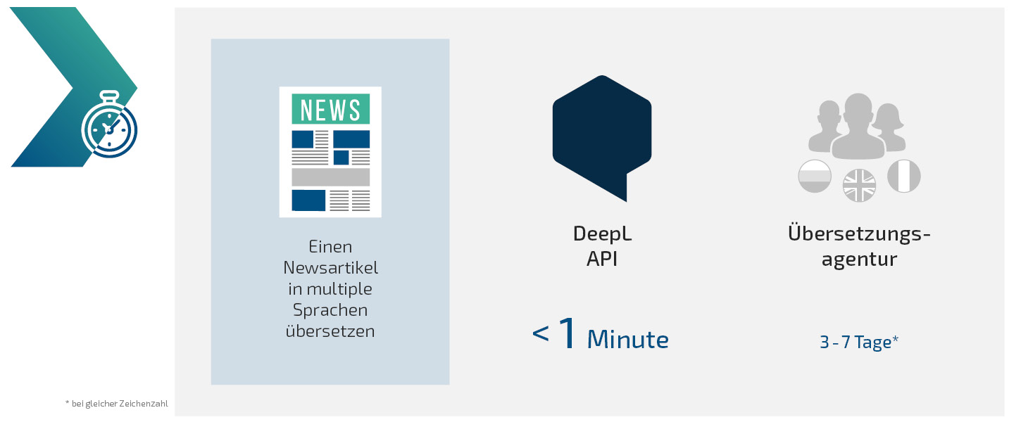 - Keine langen Wartezeiten mehr, sondern Übersetzung neuer Inhalte nahezu in Echtzeit