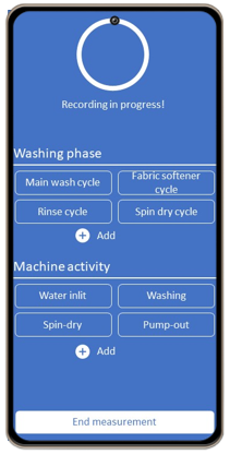 Christoph Wilding: The setup consisted of a standard washing machine, which was equipped with a power meter from the manufacturer myStrom for measuring power consumption and with a multi-sensor from Bosch, the Bosch Connected Industrial Sensor Solution (Bosch CISS, accelerometer, gyroscope, magnetometer, temperature sensor) and by Sensry, the Kallisto (accelerometer, gyroscope, magnetometer). The sensors were each installed on the front of the washing machine under the door so as not to have to intervene invasively into the machine. The microphones integrated into Android notebooks, smartphones and tablet PCs were used for audio recording, which also ran the measurement application (graphical interface) for entering the metadata of the washing process (washing program, temperature, options).