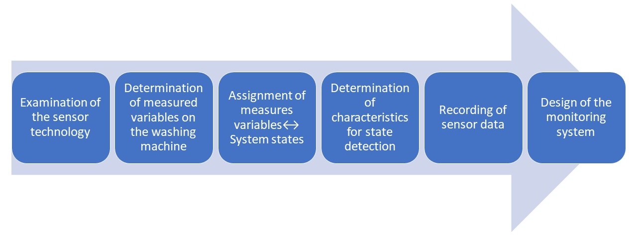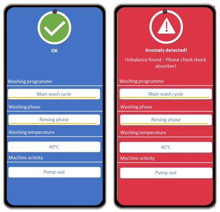 Christoph Wilding: The monitoring system is affected by vibration, audio signal, power consumption and process time. Vibration is the variable frequently used in practice to determine the operating mode and machine condition. The different vibrations make it possible to draw conclusions about machine activity. The audio signal is used to determine the operating mode and is particularly effective in detecting anomalies in combination with machine learning. The power consumption of the washing machine is affected by the temperature and the wash cycle selected. Here, the instantaneous power consumption provides good conclusions about the activity of the heating element and the pattern of power consumption during the washing program used. The process time and the running time of the various washing programs differ significantly from one another due to the length of the washing phase, which makes it easier to recognize the washing program.