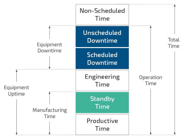 For example, the OEE calculation in accordance with SEMI E10 consists of the following factors